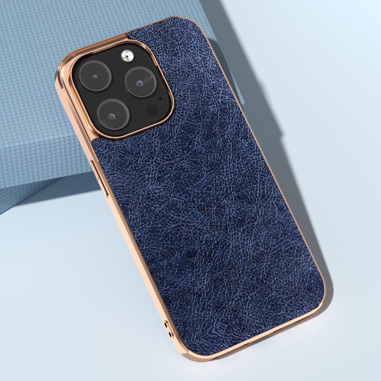 Funda para iPhone 14 Pro Max Retro Litchi Texture PU Azul