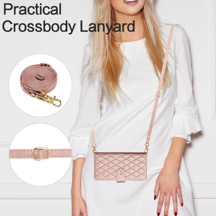 Funda para Teléfono iPhone 14 Pro Max Ym016 Cuero con Billetera y Tarjeta Cremallera Rómbica (Oro Rosa)