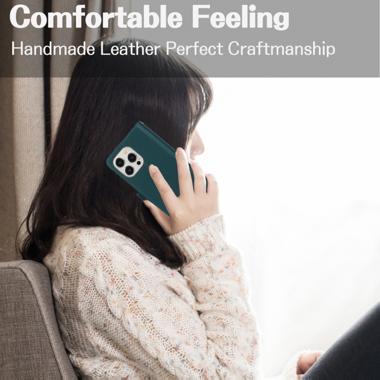 Funda de Cuero para Teléfono iPhone 14 Pro Max Ym016 con Billetera, Tarjeta, Cremallera Rómbica y Cordón (Verde)