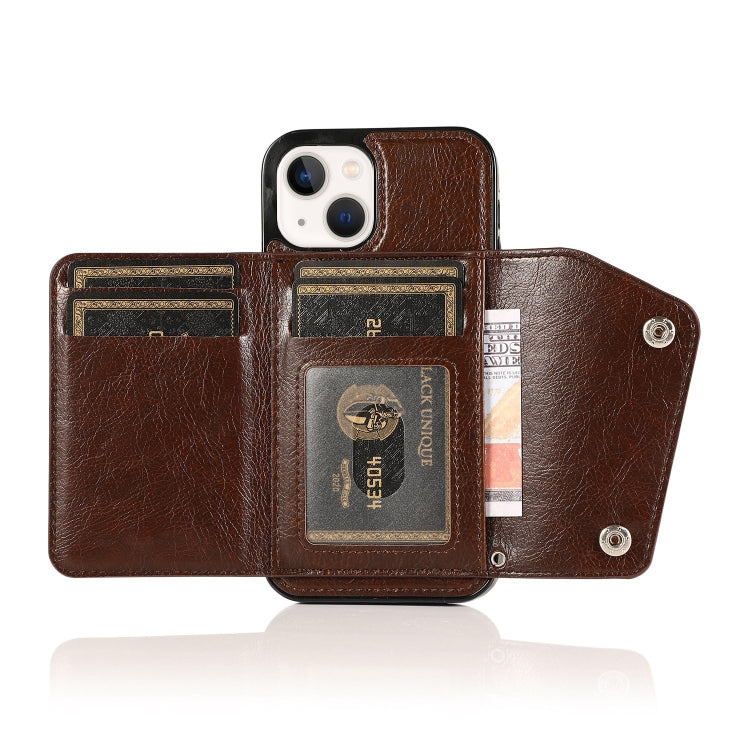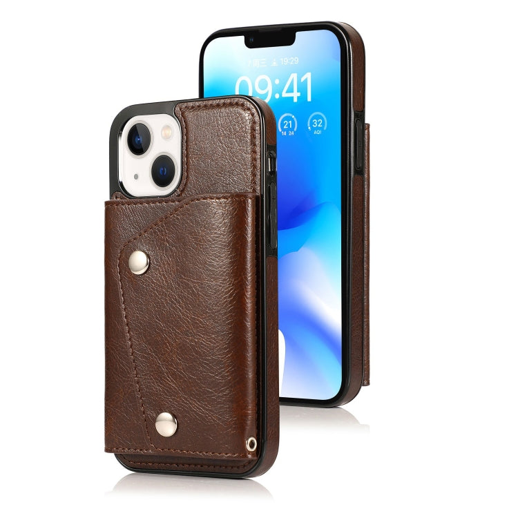 Funda para teléfono iPhone 14 con ranuras para tarjetas PU + TPU (Marrón)