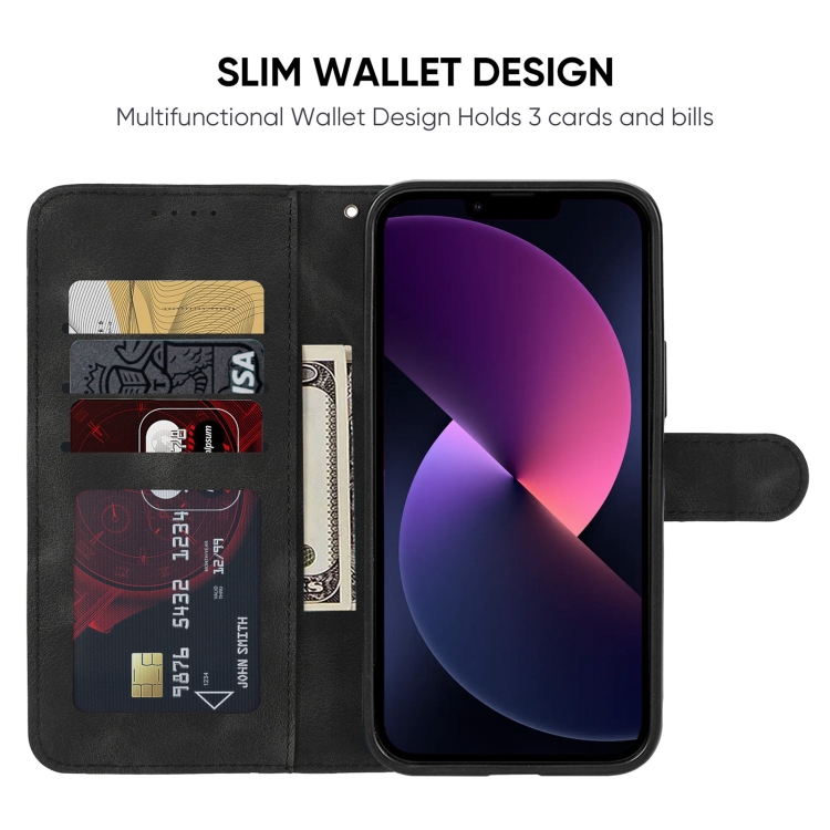 Funda de Cuero para Teléfono iPhone 14 Skin Feel con Líneas Geométricas (Negro)