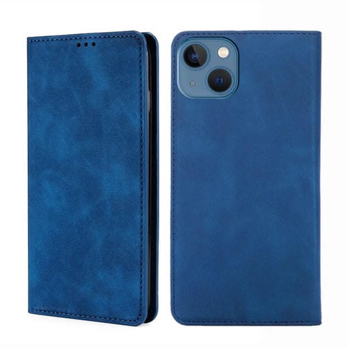 Funda Magnética de Cuero para iPhone 14 Skin Feel (Azul)