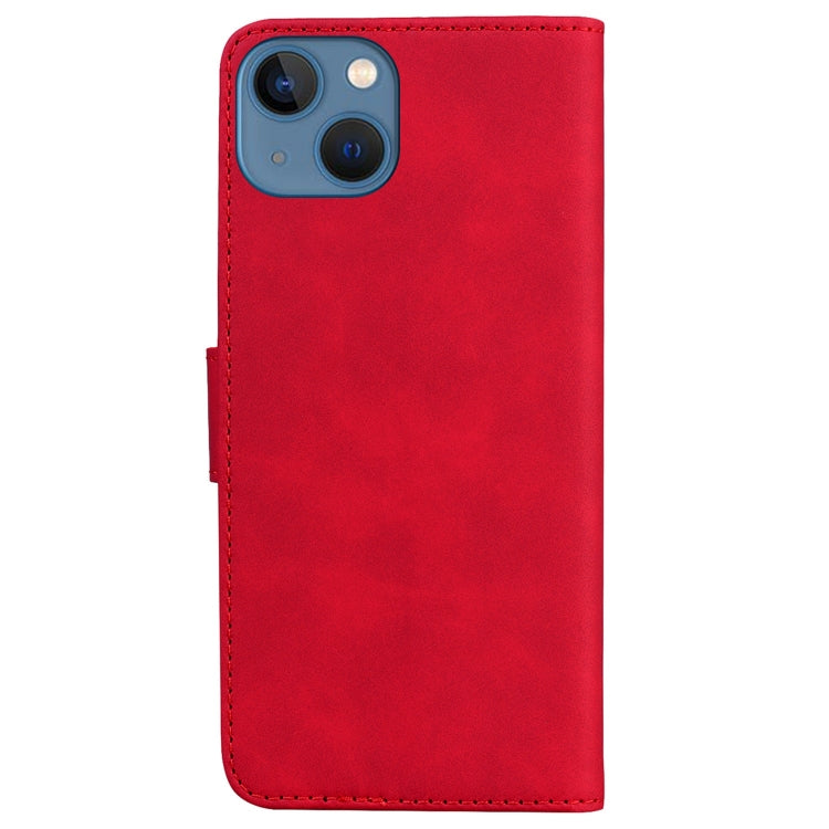 Funda de Cuero con Tapa para iPhone 14 Skin Feel Pure Color (Rojo)