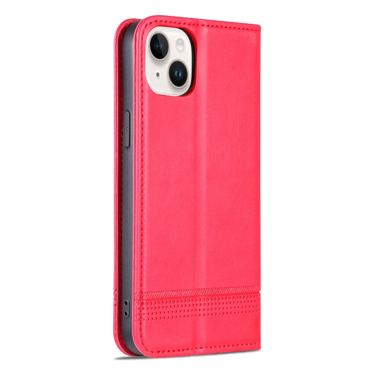 Funda de Teléfono Azns para iPhone 15 Cuero Textura de Becerro Magnético (Rojo)