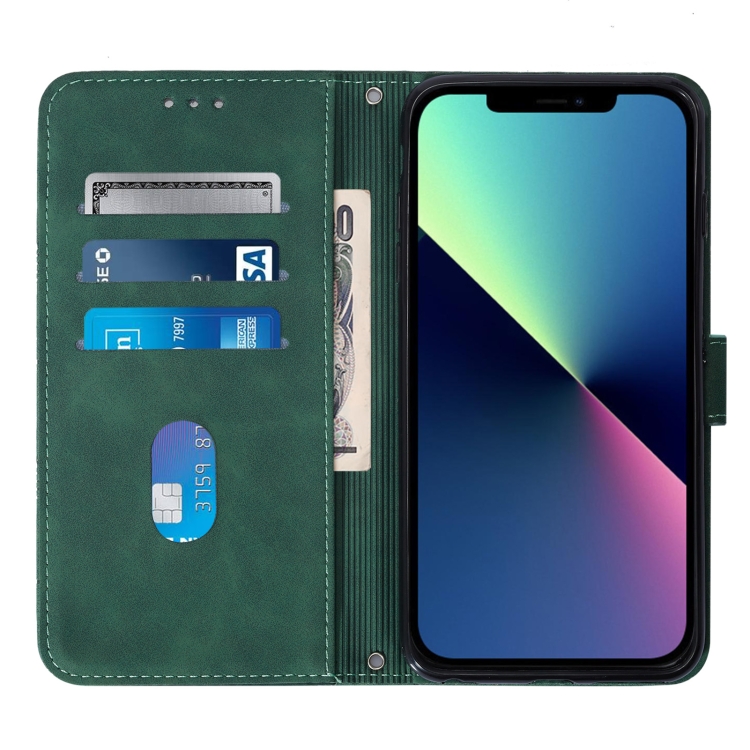Funda para iPhone 15 Crossbody 3D de Cuero con Tapa en Relieve (Verde Oscuro)