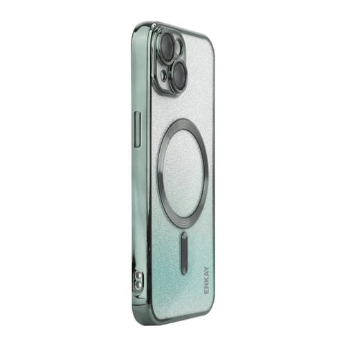 Estuche para Teléfono Enkay Hat-Prince iPhone 15 a Prueba de Golpes con Brillo Magnético y Película para Lentes (Verde)