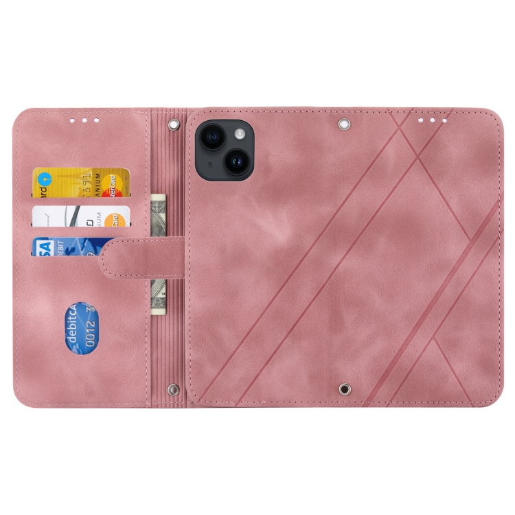 Funda para iPhone 15 Cuero Línea en Relieve Cordón (Rosa)