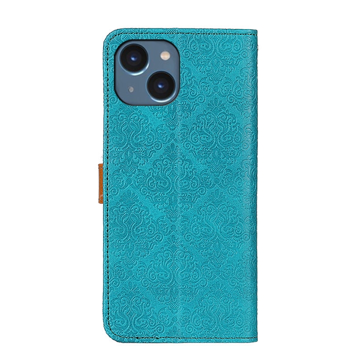 Funda de Teléfono para iPhone 15 Cuero En Relieve Floral Europeo (Azul)