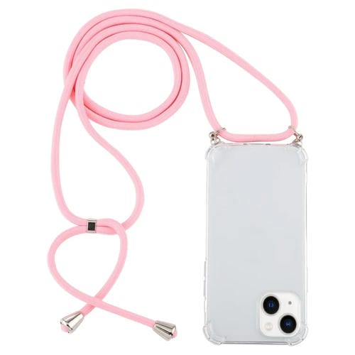 Funda TPU para iPhone 15 Transparente a Prueba de Golpes de Cuatro Esquinas con Cordón (Rosa Claro)