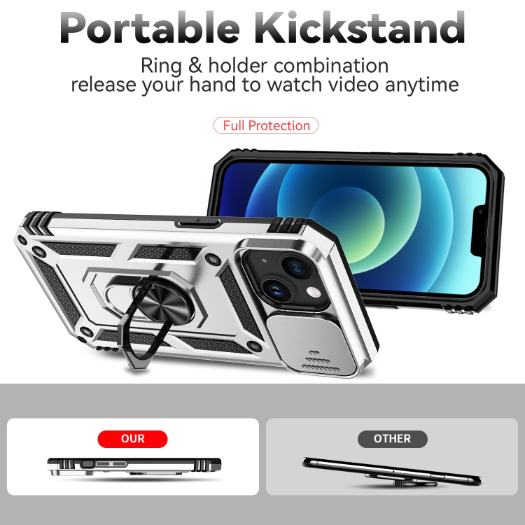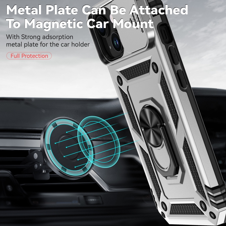 Funda Deslizante para Teléfono iPhone 15 con Soporte Camshield (Plata)