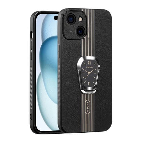 Funda Magnética para Teléfono iPhone 15 Parte Trasera de Cuero Litchi con Soporte (Negro)