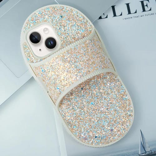 Funda para Teléfono TPU Apple iPhone 15 a Prueba de Golpes Diseño Zapatilla con Purpurina (Dorado)