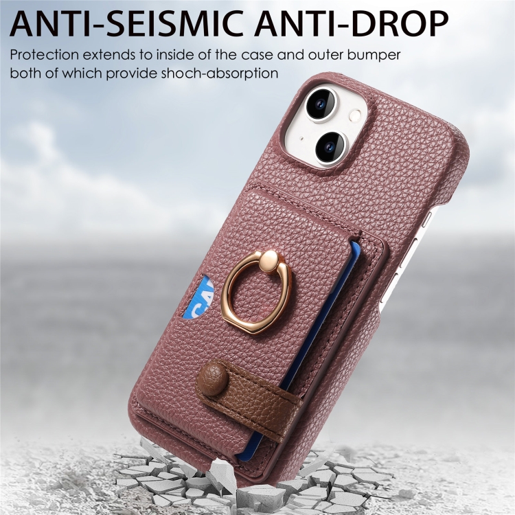 Funda para Teléfono iPhone 15 Borde de Aceite Cuero Litchi Parte Posterior Tarjeta (Albaricoque Azufaifo)