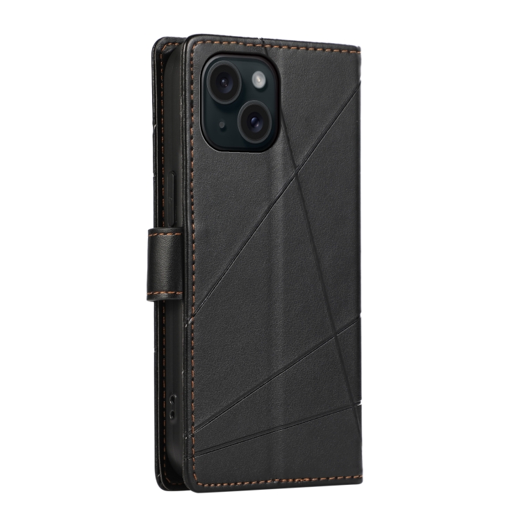 Funda para Teléfono iPhone 15 con Línea en Relieve Textura Cuero Genuino Pu (Negro)
