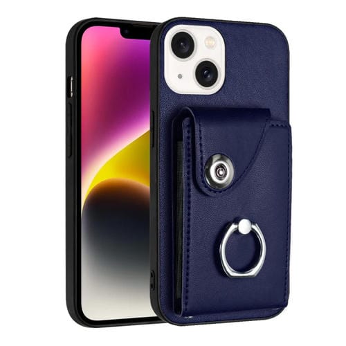 Funda para Teléfono iPhone 15 con Soporte para Anillo y Bolsa para Tarjeta de Órgano (Azul)