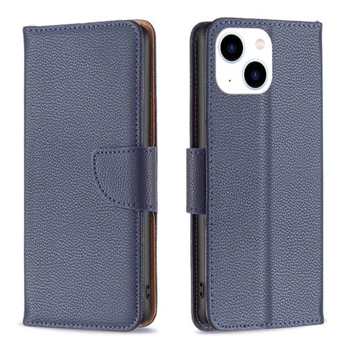 Funda Flip de Cuero para iPhone 15 Litchi Texture Pure Color (Azul)