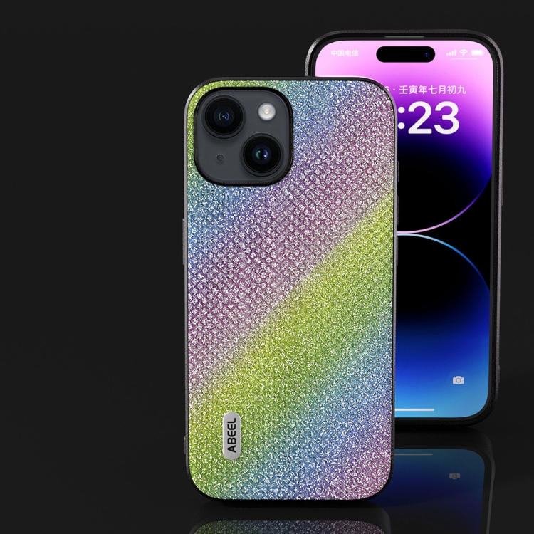Funda para iPhone 15 Plus Abeel Diamond Black Edge con diseño Rainbow Diamond
