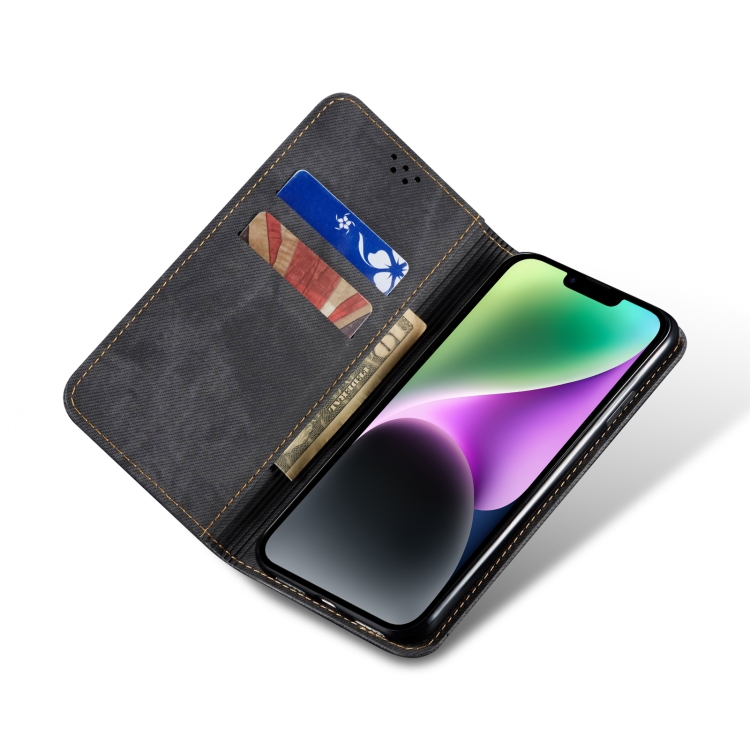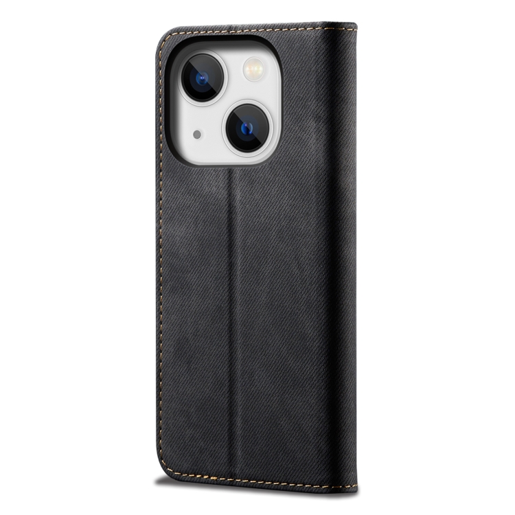Funda para iPhone 15 Plus Denim Texture Cuero con Tapa Horizontal (Negro)
