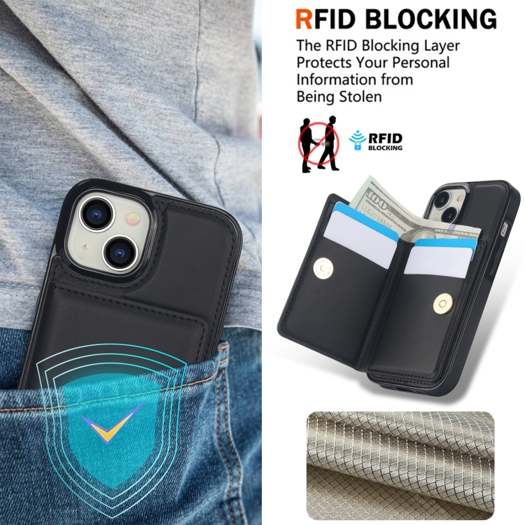 Estuche para Teléfono iPhone 15 Plus con Soporte para Anillo y Tarjeta Antirrobo Rfid (Negro)
