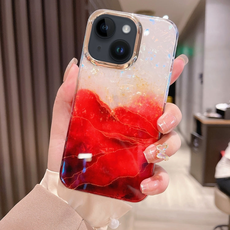 Estuche para teléfono TPU iPhone 15 Plus con ondulación de cristal colorido (Rojo)