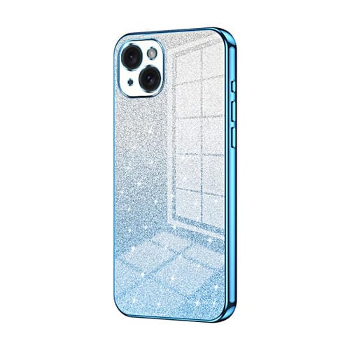 Estuche para Teléfono iPhone 15 Plus Galvanizado con Polvo de Brillo Degradado (Azul)