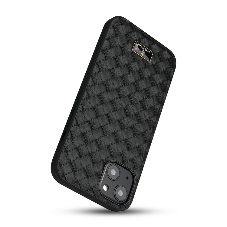 Funda para iPhone 15 Plus Fierre Shann Leather Texture Tapa Trasera (Negro)