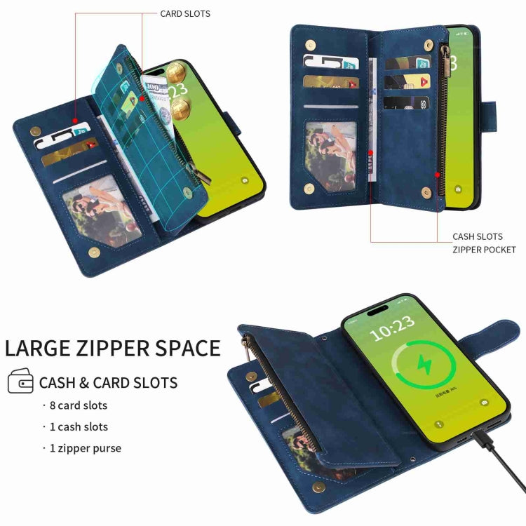 Funda Cruzada de Cuero para iPhone 15 Plus con Cremallera y Ranura para Tarjetas (Azul Oscuro)