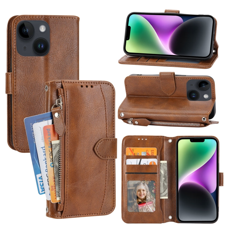 Funda para iPhone 15 Plus Cuero con Billetera y Cremallera Piel de Aceite (Marrón)