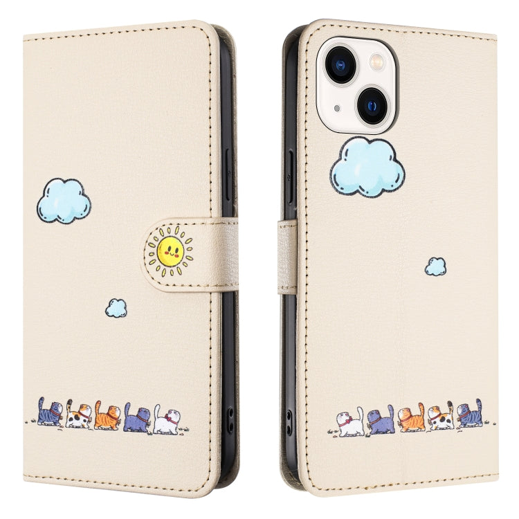 Funda para Teléfono iPhone 15 Plus Cuero Gatos Dibujos Animados (Beige Blanco)