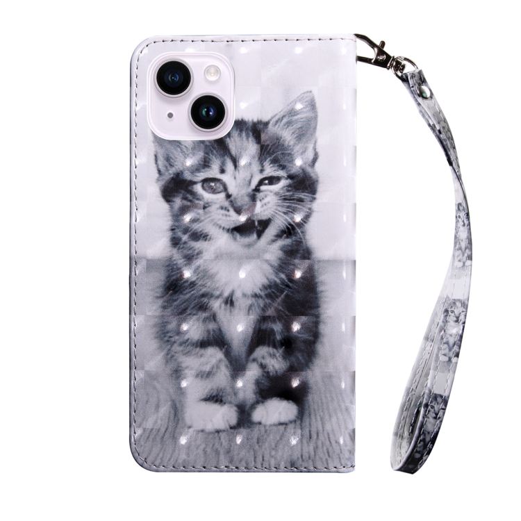 Funda de Cuero para iPhone 15 Plus Pintada en 3D Gato Sonriente