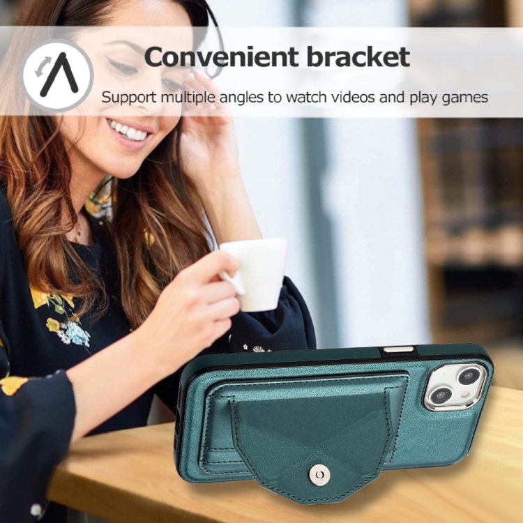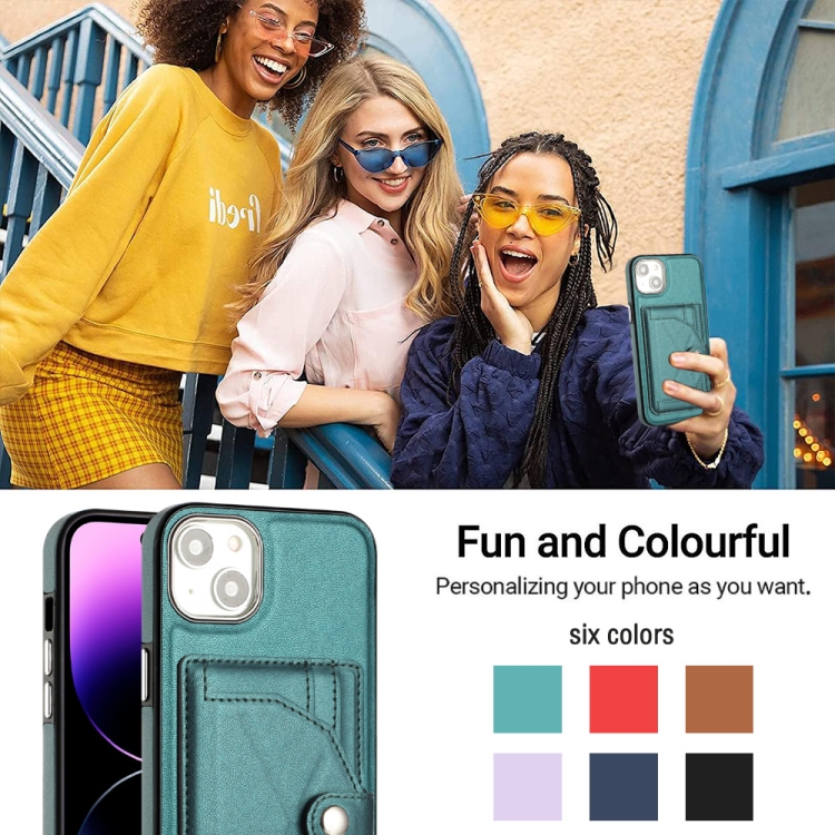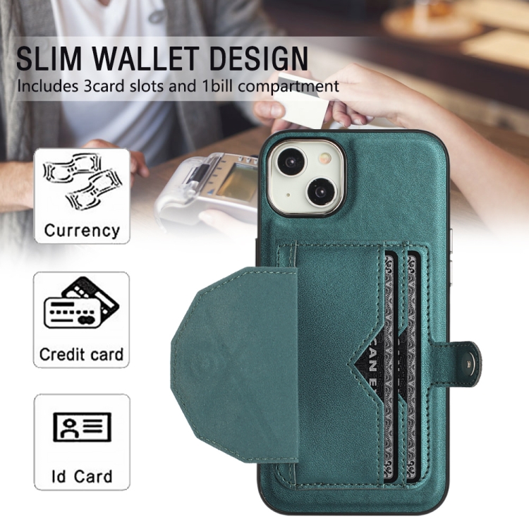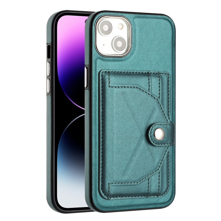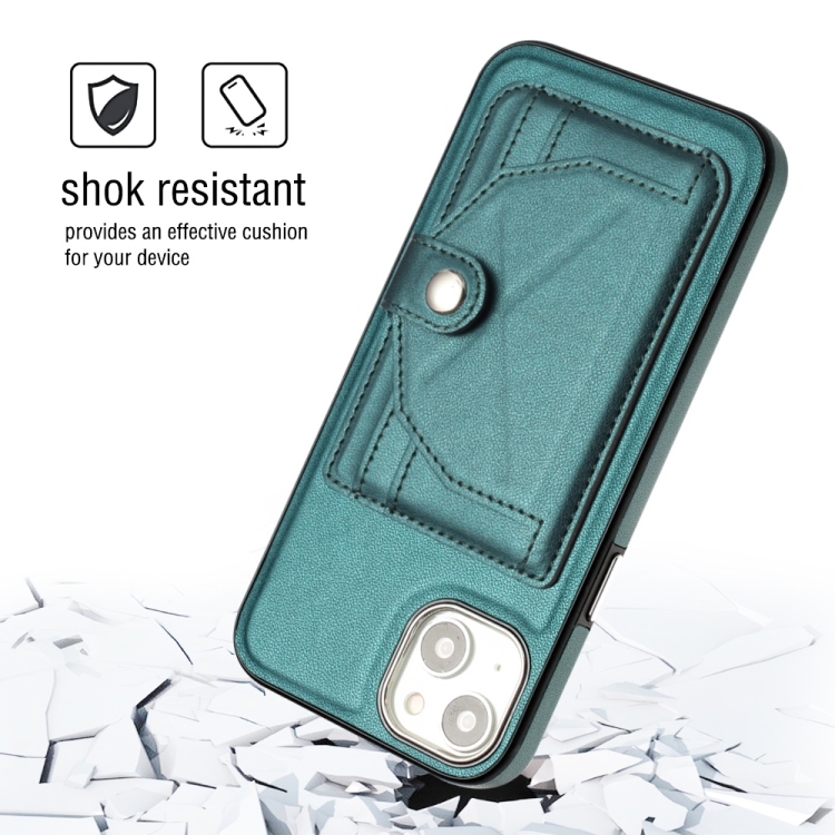 Funda de Teléfono para iPhone 15 Plus Cuero a Prueba de Golpes con Tarjetero (Verde)