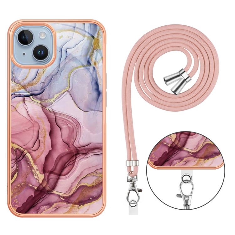 Funda para Teléfono iPhone 15 Plus Galvanoplastia Imd TPU con Cordón (Rose Red)