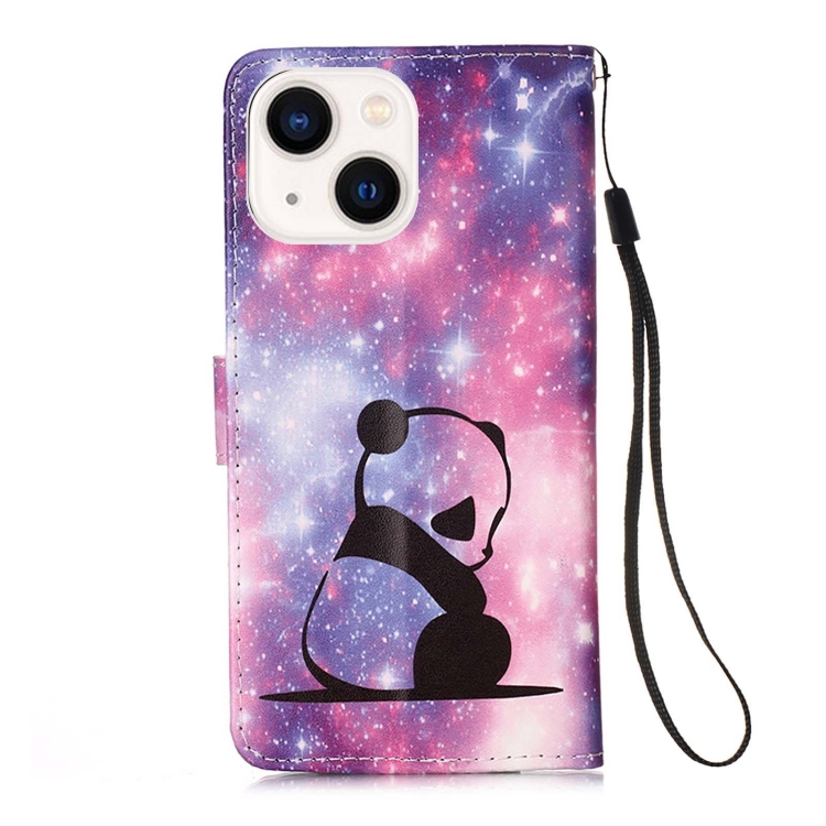 Funda de teléfono iPhone 15 Plus Patrón de dibujo coloreado cuero tejido liso (Panda bebé)