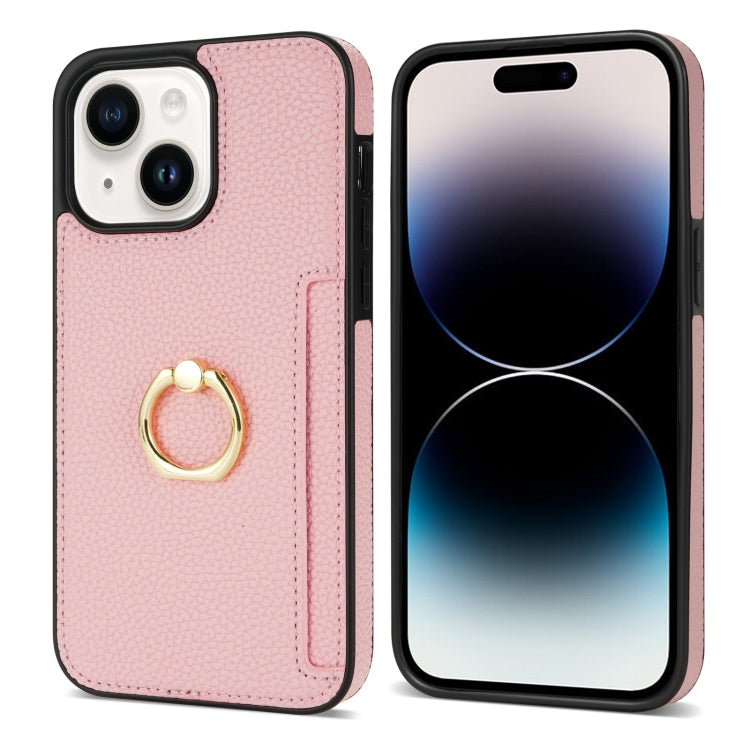 Funda Trasera para iPhone 15 Plus Ring Card Litchi Cuero (Rosa)