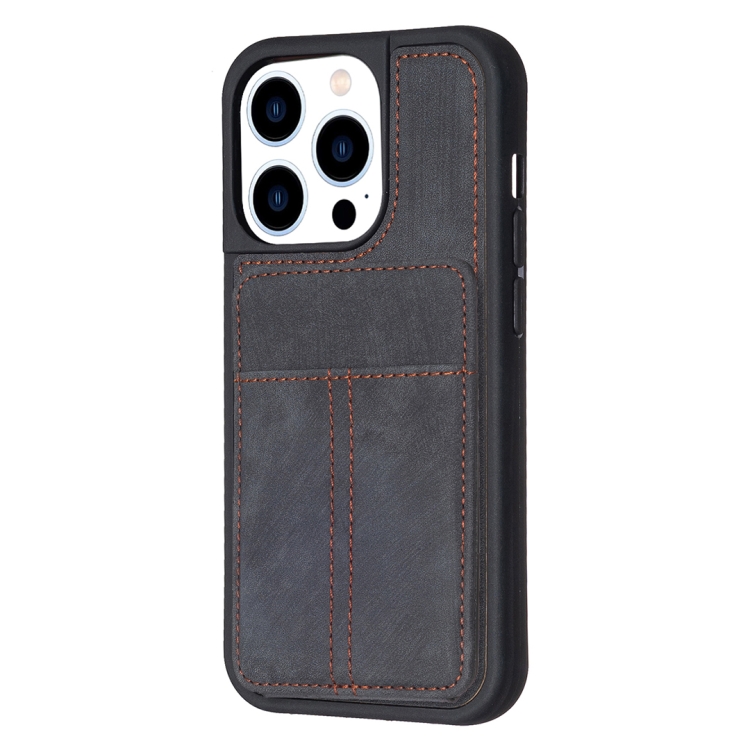 Funda para Teléfono Bf28 para iPhone 15 Pro con Bolsa para Tarjetas Esmerilada y Soporte (Negro)