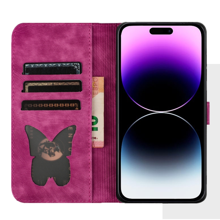 Funda para Teléfono iPhone 15 Pro Butterfly Cat Embossing Flip Cuero (Rosa)