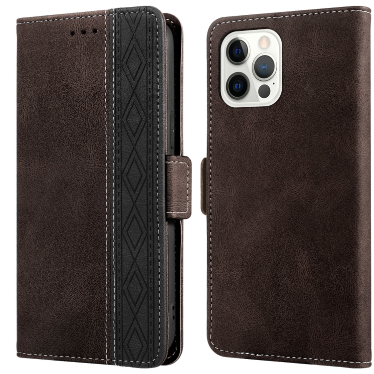 Funda para iPhone 15 Pro Cuero Costura Lateral Magnética Rfid (Café)