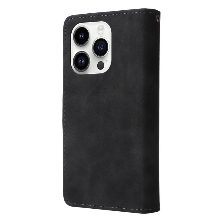 Funda para Teléfono iPhone 15 Pro Cuero con Billetera MultiTarjeta Multifuncional (Negro)