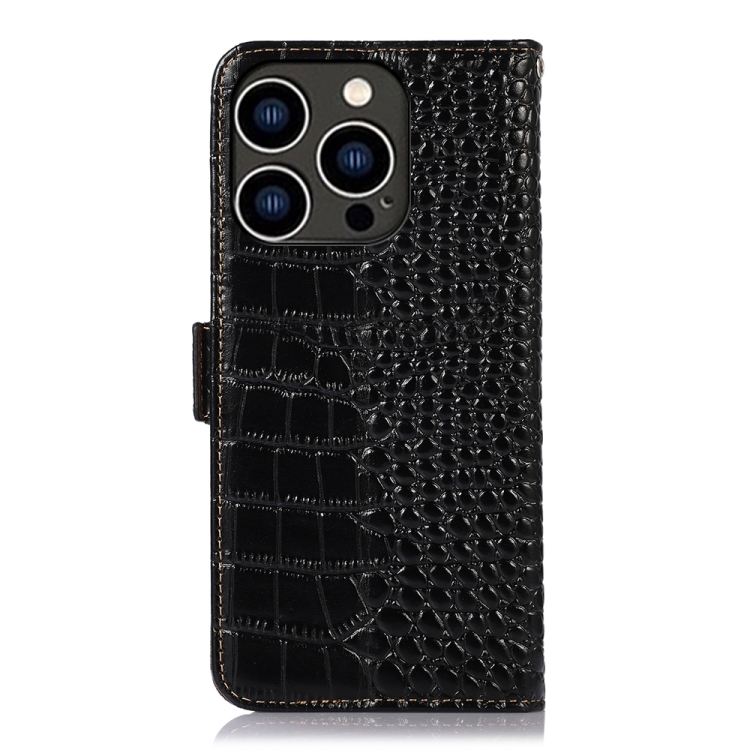 Funda de Teléfono para iPhone 15 Pro Piel de Vaca con Capa Superior de Cocodrilo (Negro)