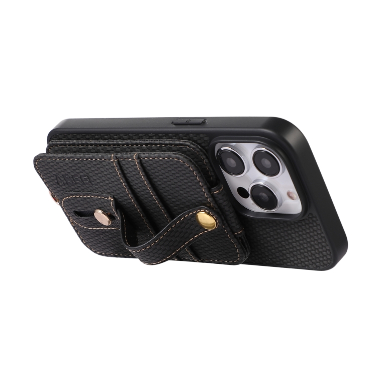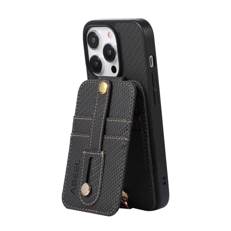 Funda de Teléfono Abeel para iPhone 15 Pro Max con Soporte de Tarjeta Rfid de Fibra de Carbono (Negro)