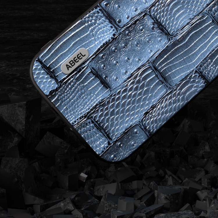 Funda para teléfono Abeel iPhone 15 Pro Max Patrón Mahjong Cuero Genuino Borde Negro (Azul)