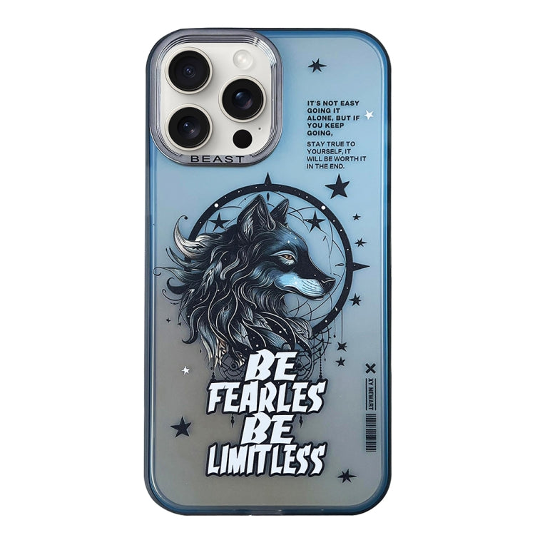 Funda para Teléfono iPhone 15 Pro Max Aurora Series Patrón Pintado (Lobo Negro)