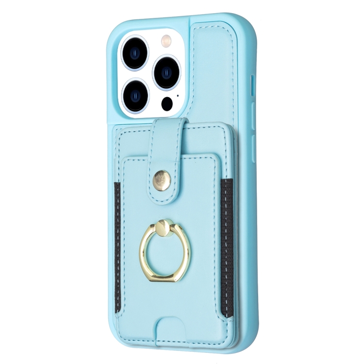 Funda para iPhone 15 Pro Max Bf27 Anillo de Metal Tarjeta Bolsa Titular Caja del Teléfono (Azul)