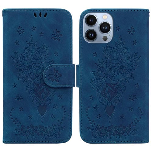 Estuche para teléfono iPhone 15 Pro Max Butterfly Rose Cuero en Relieve (Azul)