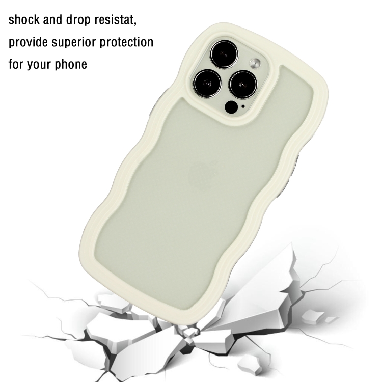 Funda para iPhone 15 Pro Max Candy Color Wave TPU Clear PC Phone Case (Blanco)