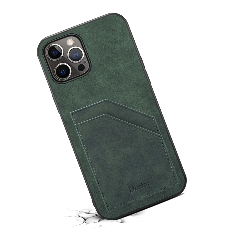 Funda Trasera para iPhone 15 Pro Max Denior Pu con ranura para tarjeta dual (Verde)