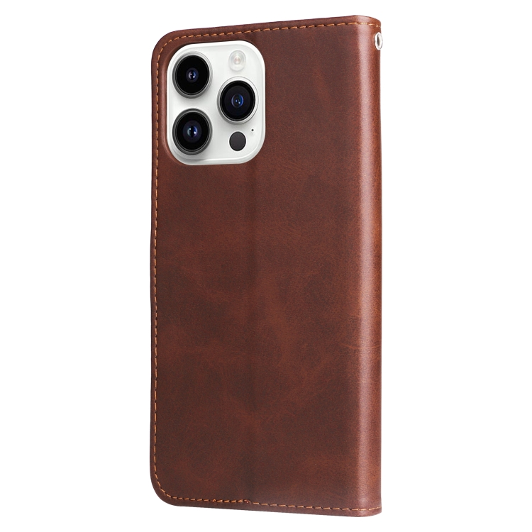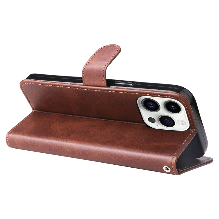 Funda para teléfono iPhone 15 Pro Max Becerro Textura Cremallera Cuero (Marrón)