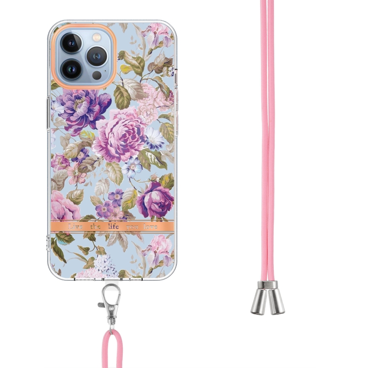 Funda para Teléfono iPhone 15 Pro Max Flowers And Plants Series Imd TPU con Cordón (Purple Peony)