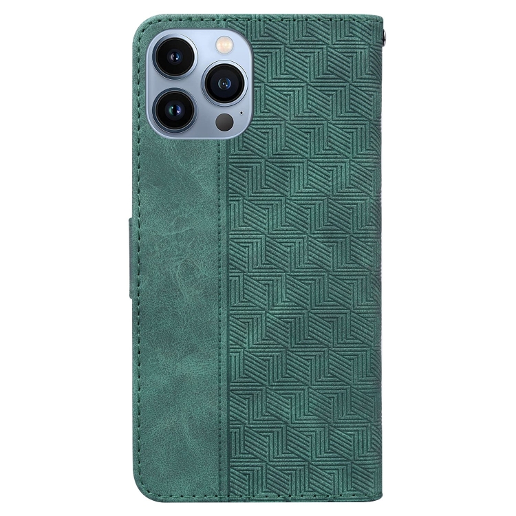 Funda de Teléfono para iPhone 15 Pro Max Cuero Relieve Geométrico (Verde)