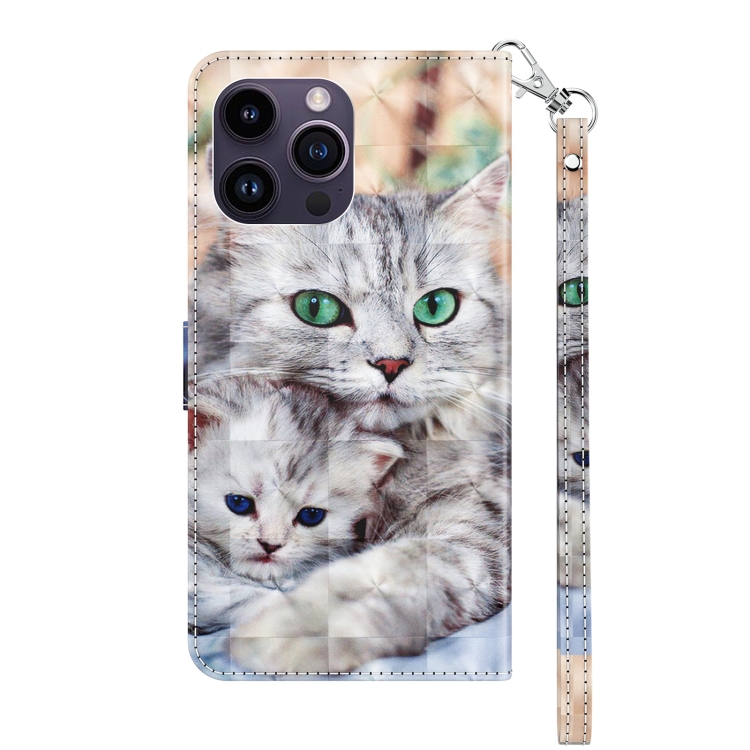 Funda para Teléfono iPhone 15 Pro Max Cuero Pintado en 3D Dos Gatos Amorosos
